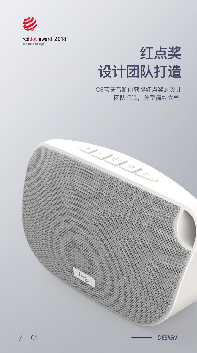商品名称:幻响(i-mu)TWS无线蓝牙音箱 白灰经典配色桌面音响 迷你便携插卡音箱 商务礼品定制