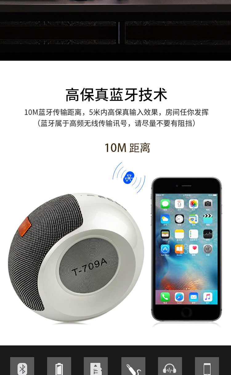 商品名称:T709A 新款便携式无线蓝牙立体重低音蜗牛小音响 科技感比较强的礼品
