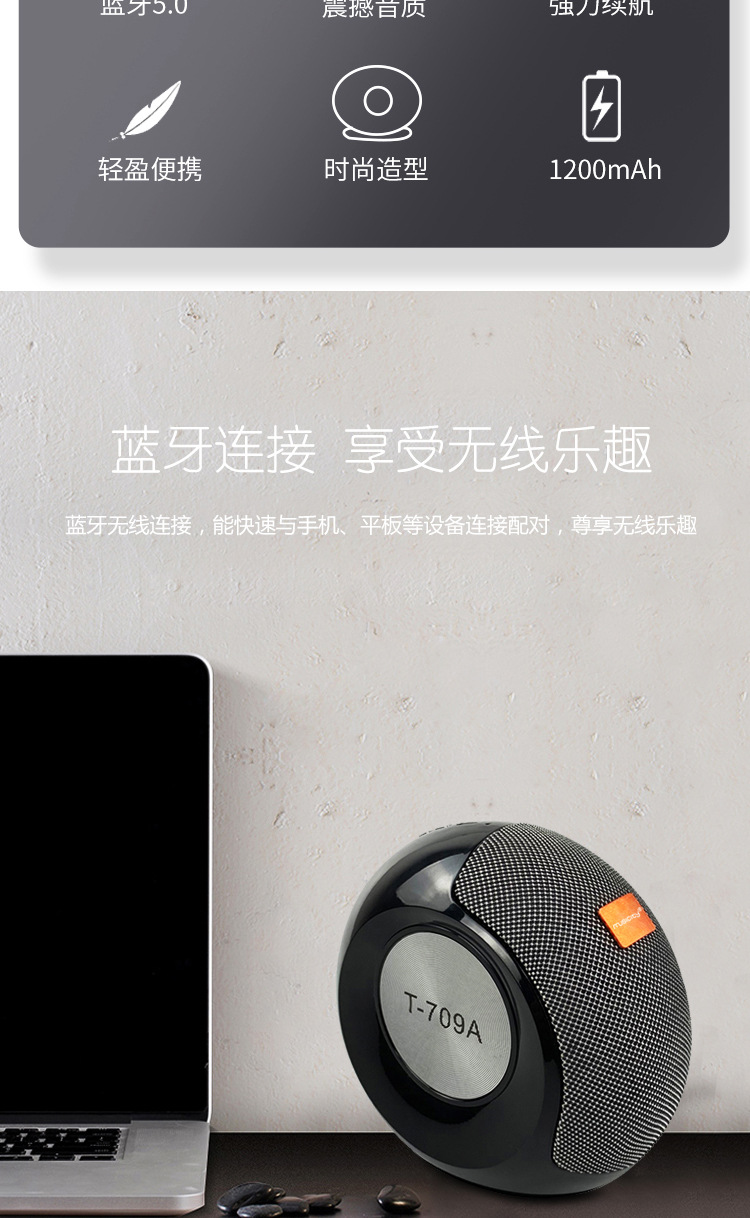 T709A 新款便携式无线蓝牙立体重低音蜗牛小音响 科技感比较强的礼品