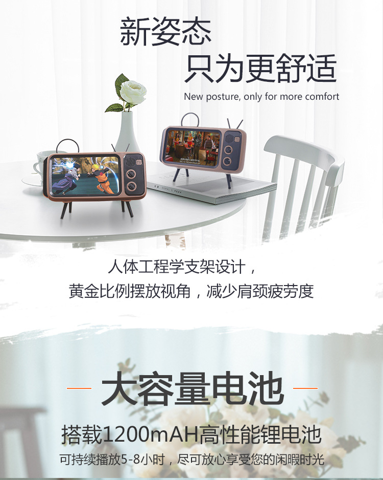 PTH800 复古电视机tv手机支架插卡蓝牙音箱 特色小礼品