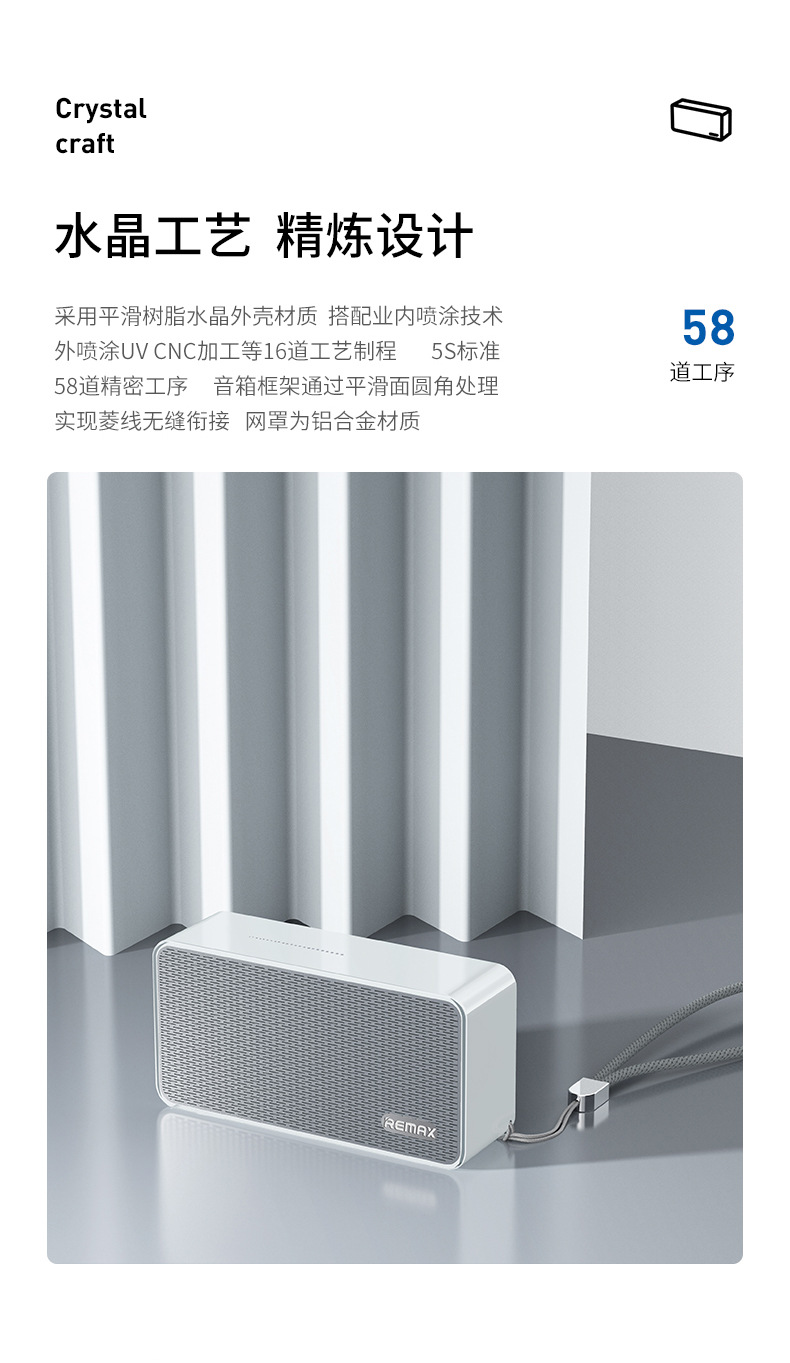 商品名称:REMAX 桌面便携蓝牙音箱 水晶壳小巧带语音功能蓝牙4.2音响 单位活动礼品 百元左右礼品定制
