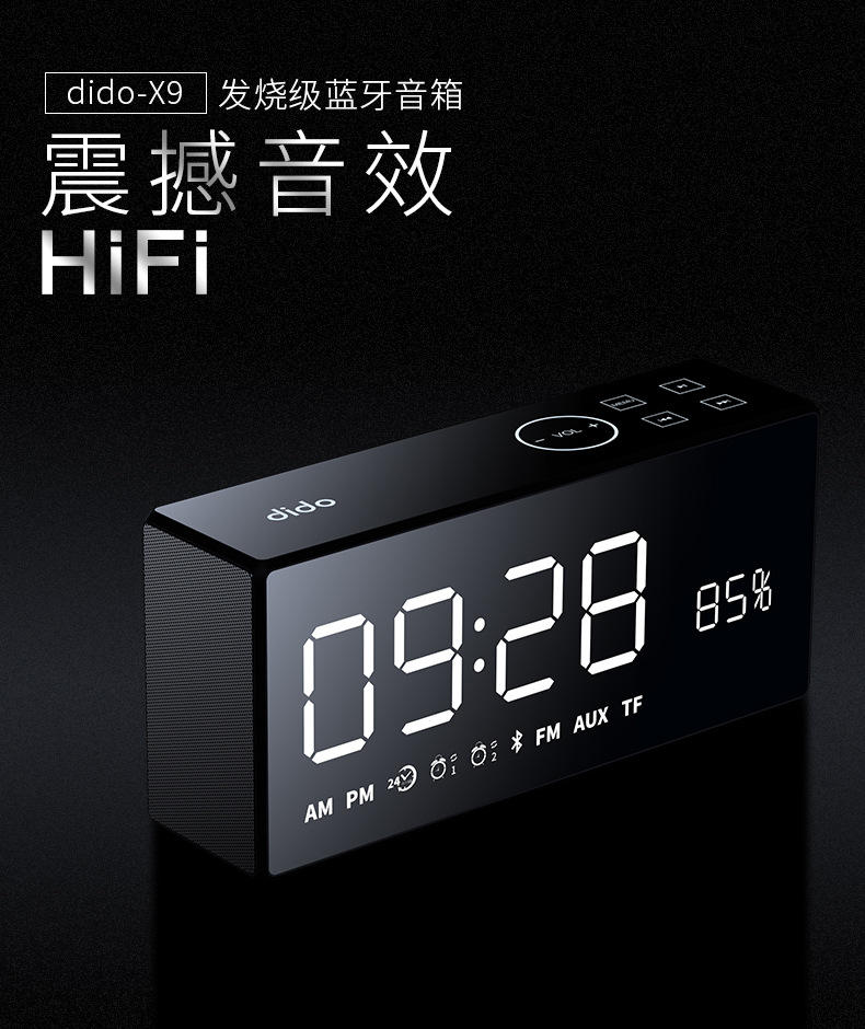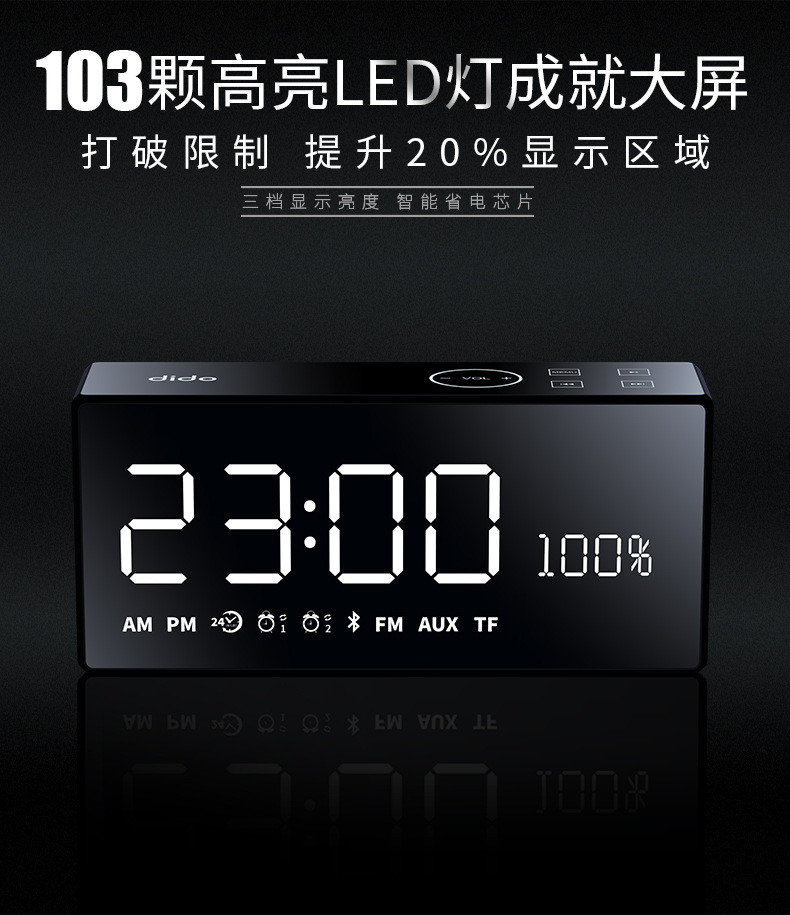 商品名称:DODI震撼音效无线蓝牙音箱 家庭镜面小音响 收音遥控闹钟智能音箱 年会抽奖创意礼品 优秀员工奖品