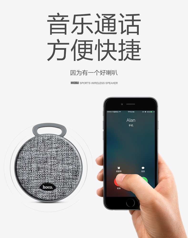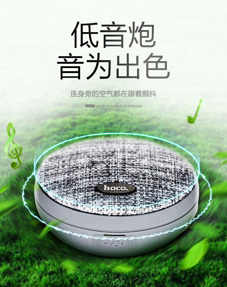 商品名称:hoco premium produc 摩布运动蓝牙音箱 户外运动蓝牙音箱 便携插卡智能音响 布艺行业有哪些小礼品 微信活动小礼品