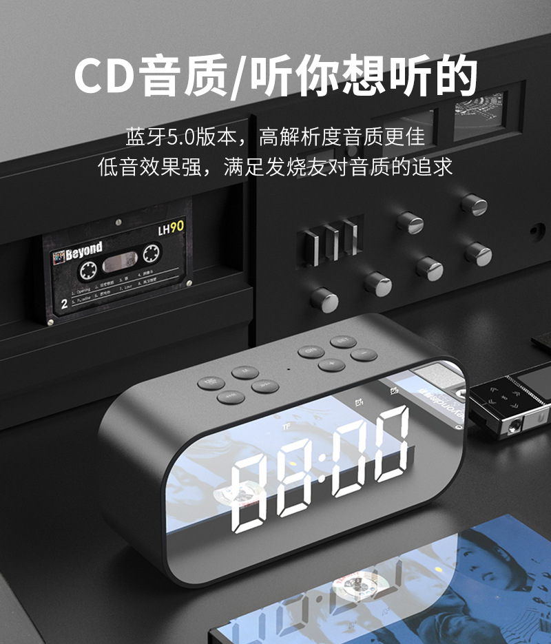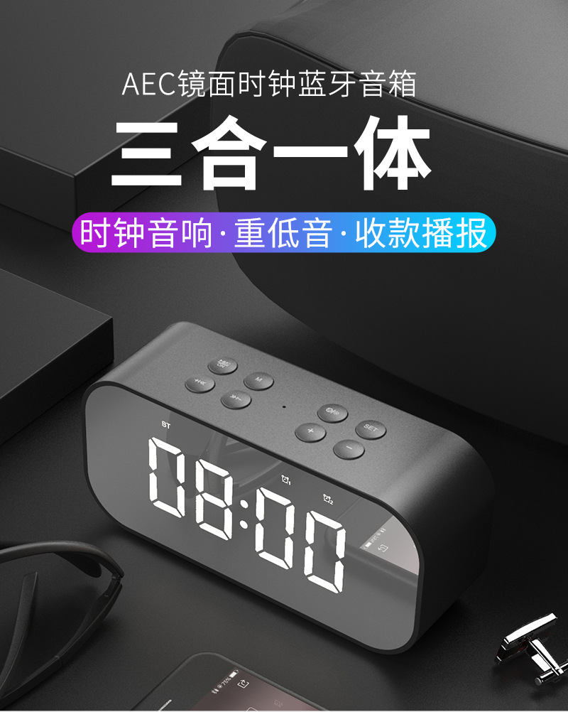 商品名称:高颜值LED闹钟无线迷你蓝牙音箱 镜面带屏时钟收款播报插卡小音响 比赛实用奖品 互联网行业礼品