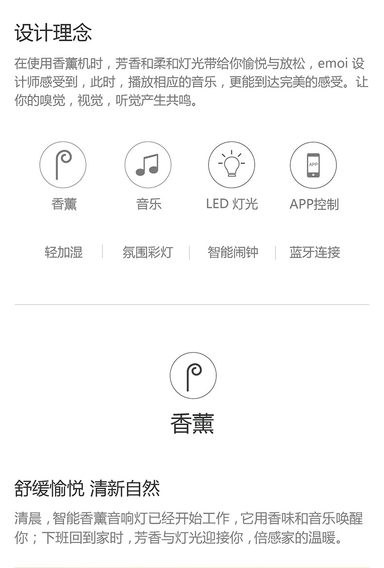 商品名称:emoi 简约风智能香薰音响灯 香薰精油加湿器 多功能小音箱 实用商务礼品
