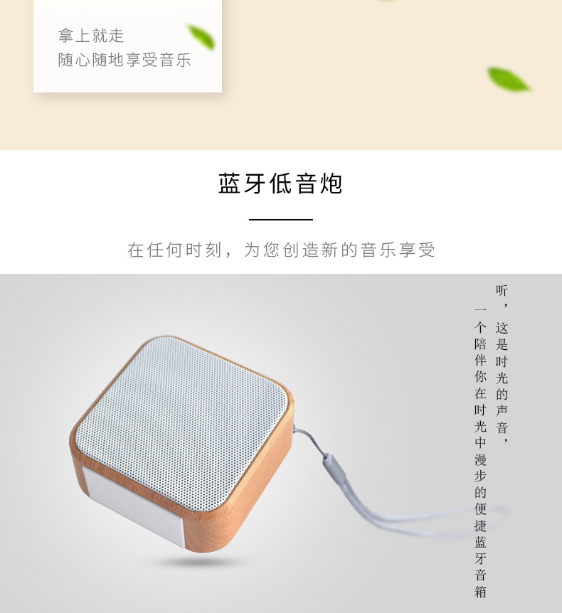商品名称:木纹蓝牙音箱便携式插卡 迷你低音炮无线音响 定制礼品logo 户外小礼品