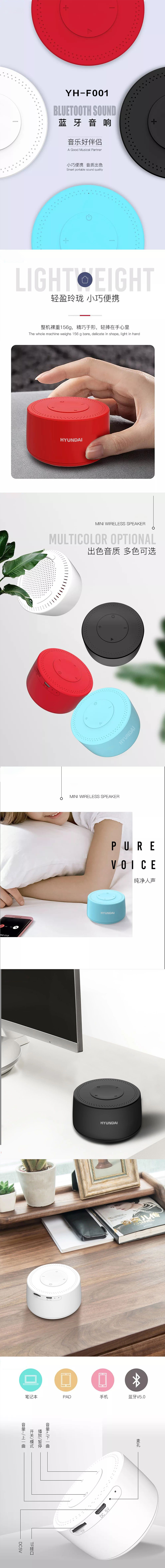 商品名称:HYUNDAI/现代 迷你款无线蓝牙音箱 户外小礼品 方便携带的小礼品