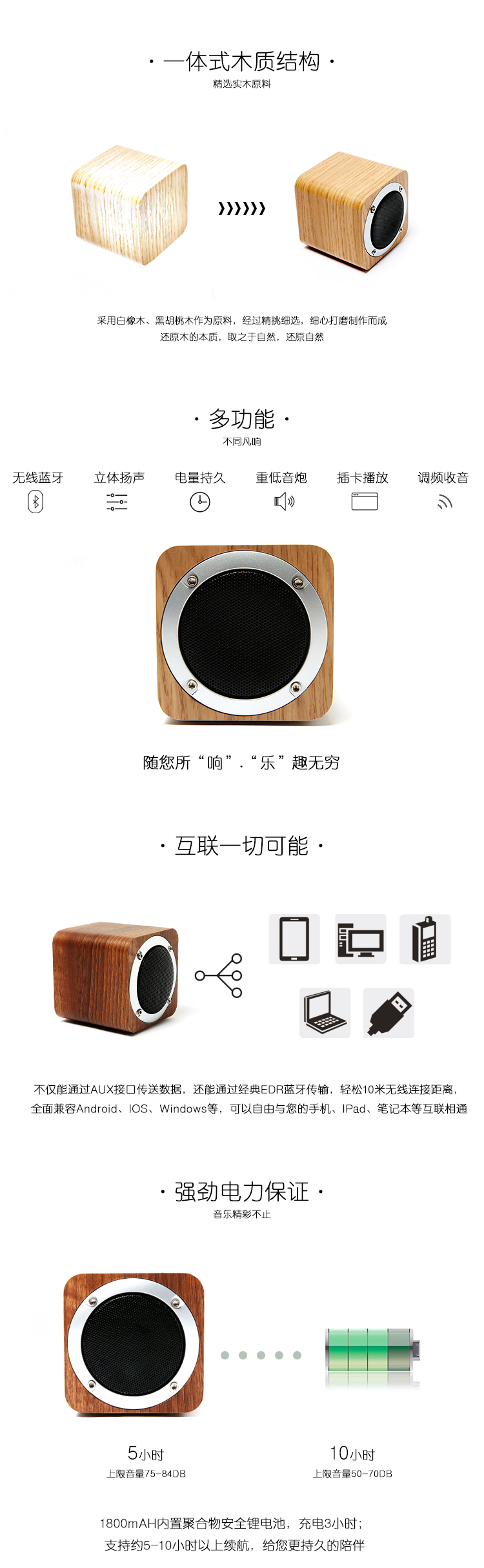 商品名称:蓝牙复古迷你小音箱 重低音炮插卡便携音响 桌面木质简约音响 - 白橡木