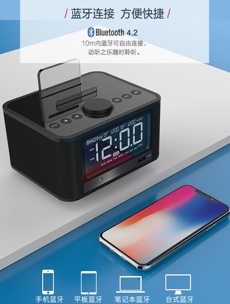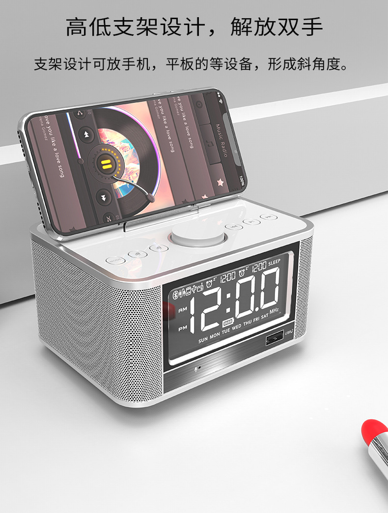 多功能手机架气温器蓝牙闹钟音箱 360环绕立体音频音响 送大客户礼品 互联网客户礼品