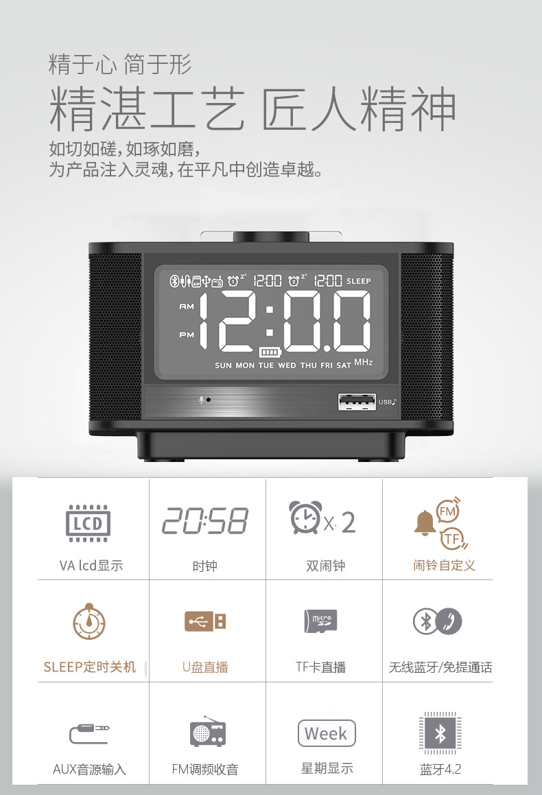 商品名称:多功能手机架气温器蓝牙闹钟音箱 360环绕立体音频音响 送大客户礼品 互联网客户礼品