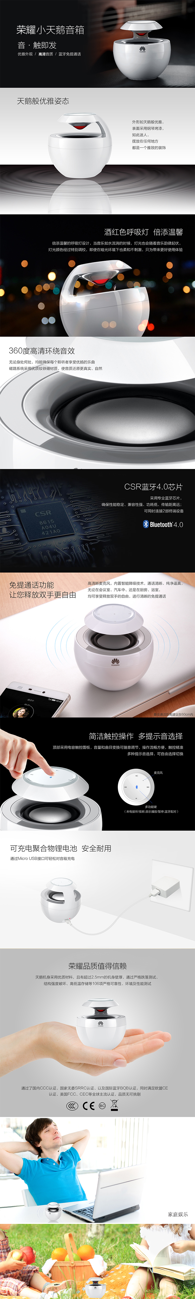 商品名称:华为(HUAWEI)荣耀小天鹅无线蓝牙音箱 免提通话蓝牙4.0 便携户外迷你音响 给办公室同事买的创意礼品