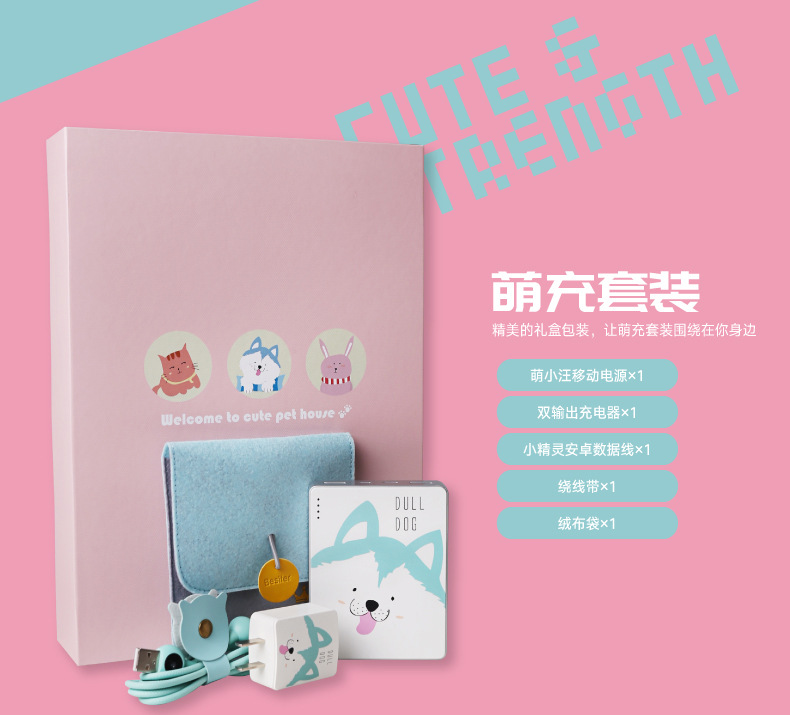 商品名称:可爱充电宝萌动充电礼盒 数据线充电宝套装 企业logo定制
