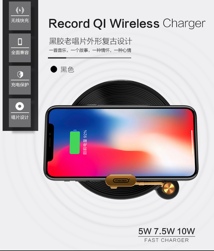 商品名称:黑胶碟唱片机造型无线充电器 复古无线充 创意小礼品