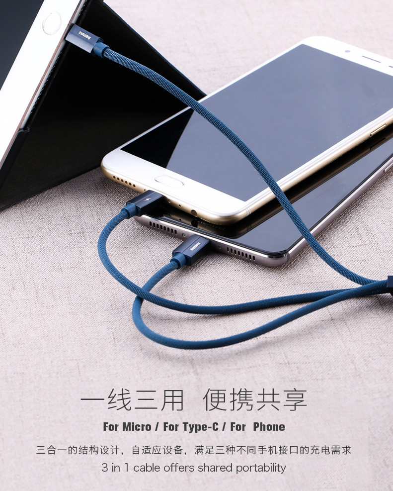 商品名称:REMAX 三合一数尼龙编织数据线 安卓苹果type-c通用快充线 社区活动小礼品