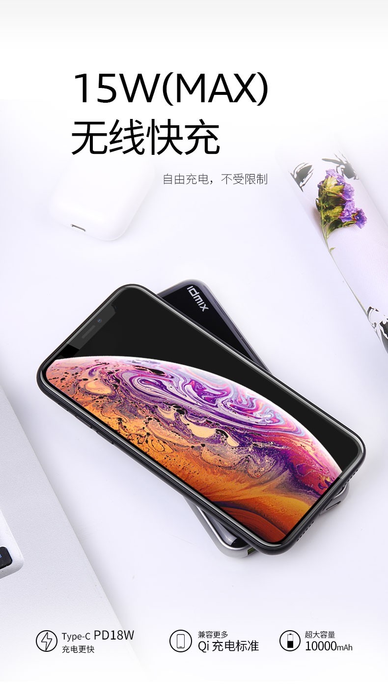 商品名称:IDMIX(大麦) 无线充电宝15W快充10000毫安PD双向快充移动电源无线充电器 优秀员工奖励 商务旅游礼品