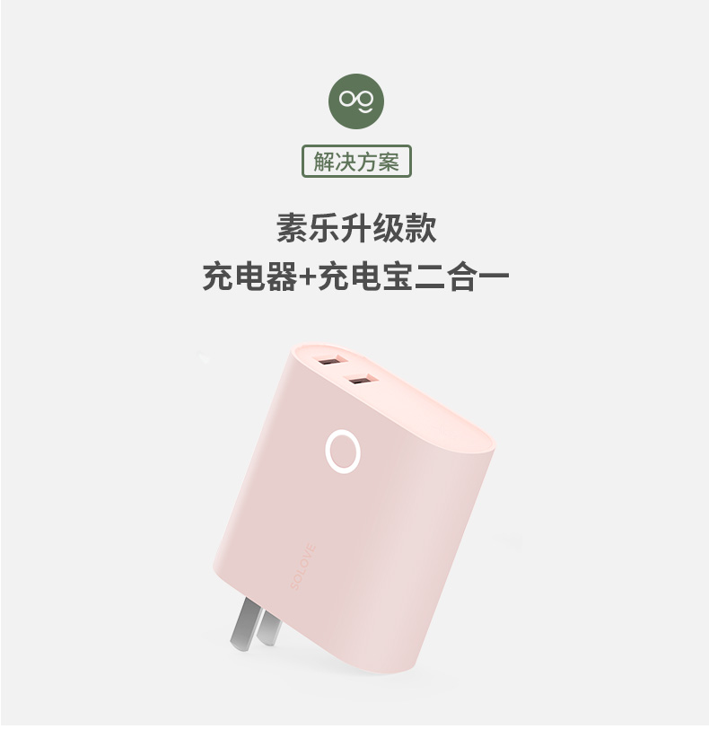SOLOVE 充电宝+充电器二合一差旅小助手 旅行商务便携迷你智能2A快充插头 简约移动电源5000毫安