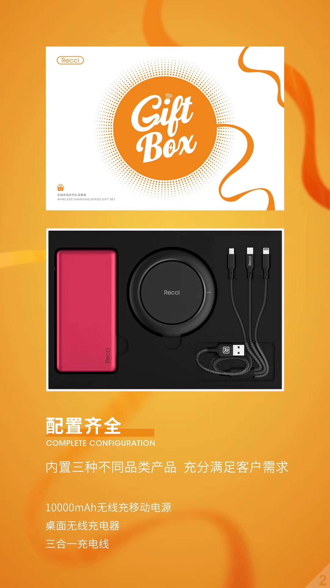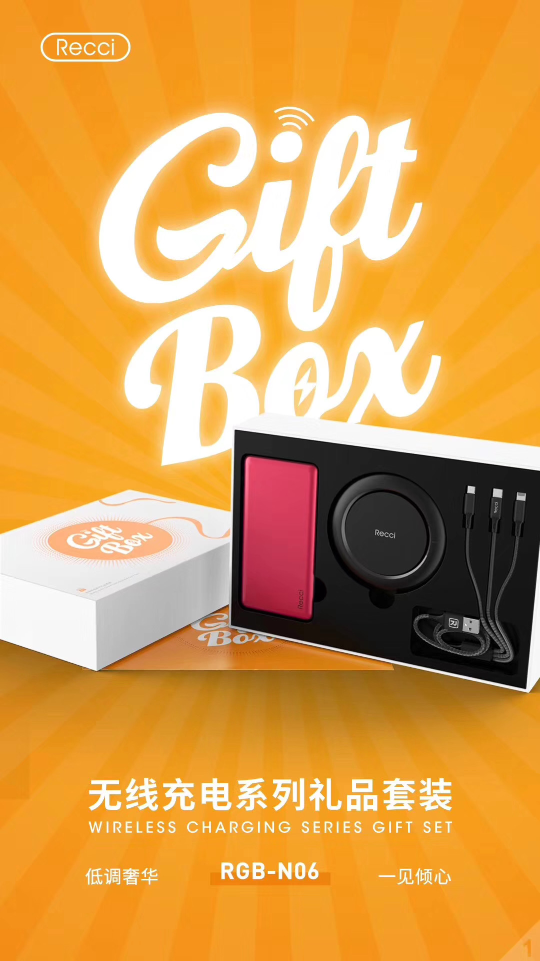 商品名称:Recci无线充电礼盒套装 无线充电宝+一拖三数据线+移动电源 企业定制LOGO 会议礼品有什么