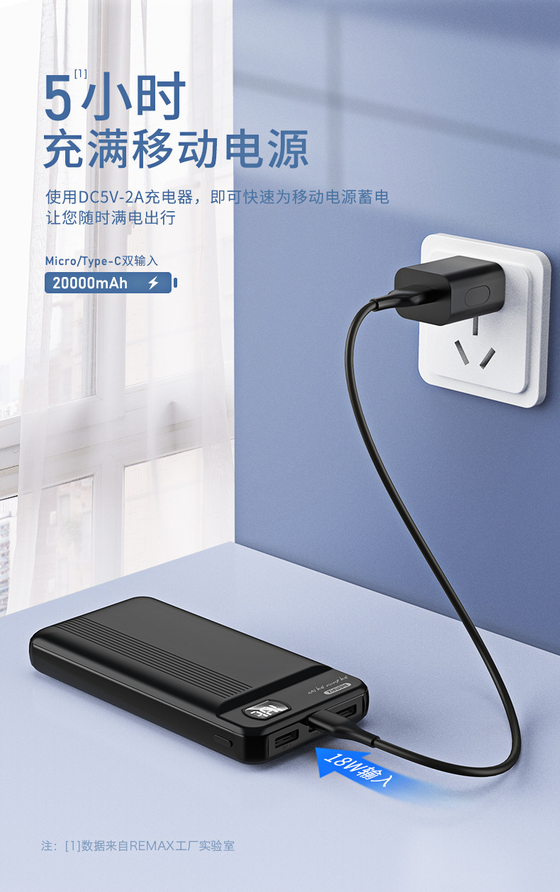 商品名称:REMAX飞驰大容量移动电源20000mAh 双进双出LED数显便携充电宝 活动现场奖品 活动集客礼品