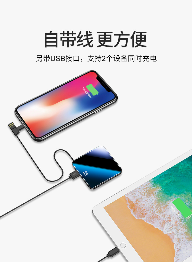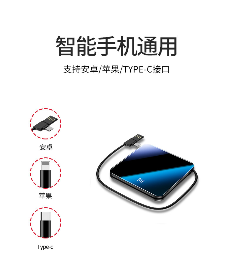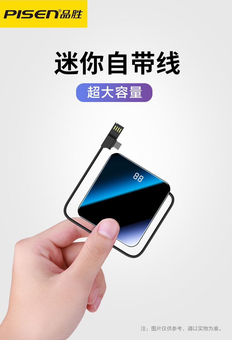 商品名称:PISEN品胜镜面全屏10000毫安迷你超薄移动电源定制 三合一机线一体充电宝 公司周年庆准备什么礼品比较好