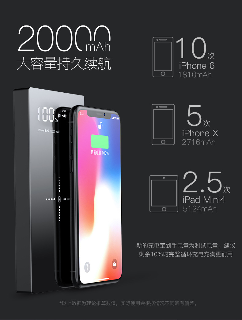 商品名称:TOVAOON 20000毫安无线快充移动电源 大容量实用便携通用充电宝 周年 礼品 多功能实用小礼品
