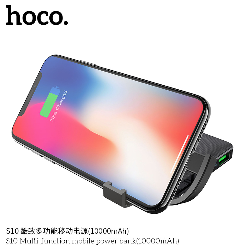 商品名称:hoco premium product PD+QC双向10000毫安充电宝 18W快充移动电源无线充支架三合一 企业十周年纪念品