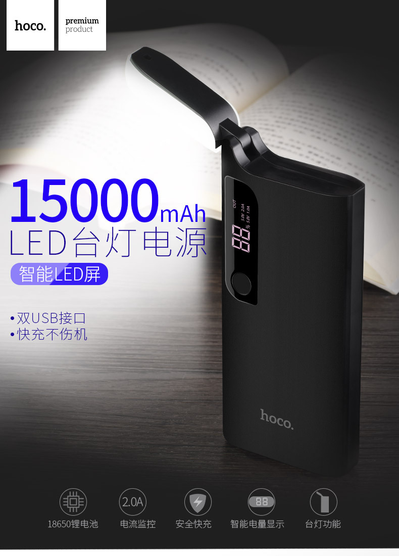 商品名称:hoco premium produc 台灯移动电源双USB15000毫安 磨砂晒纹充电宝创意礼品 100元左右礼品定制