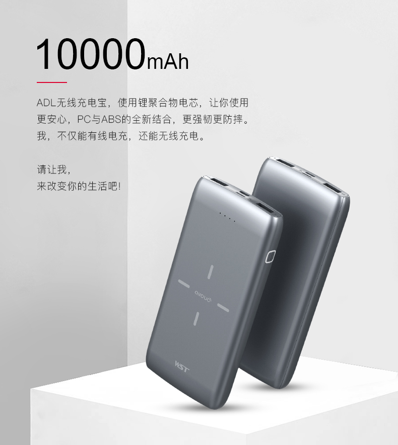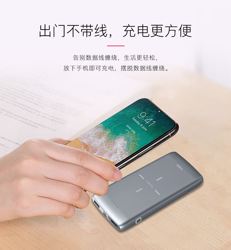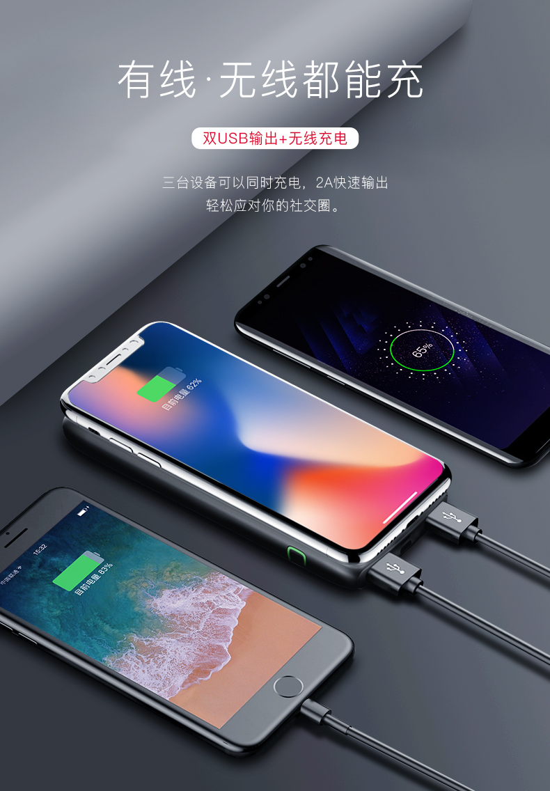 商品名称:便携无线充电宝 大容量双USB输出商务充电宝10000毫安 商务办公礼品