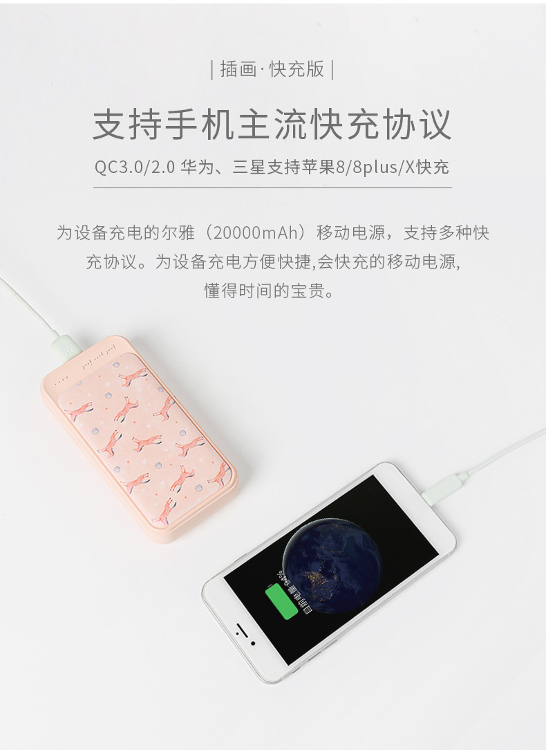 商品名称:大容量20000毫安快充充电宝 可爱女便携商务移动电源 大客户礼品定制 公司女员工的礼品