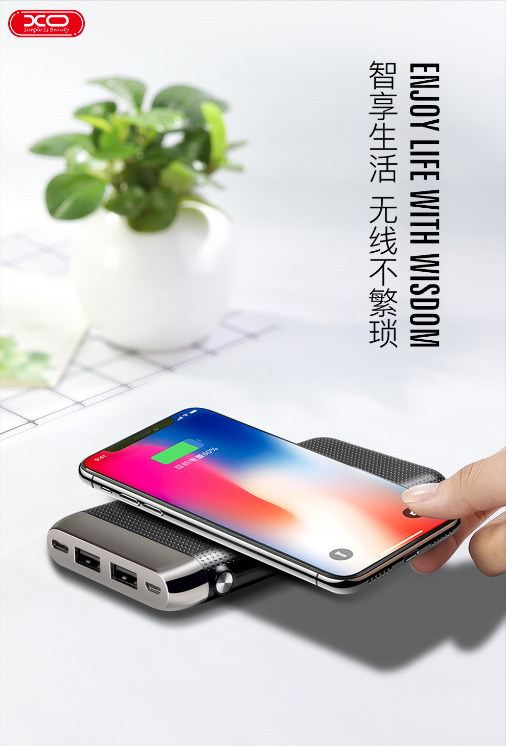 XO潮牌 智能无线充+10000毫安移动电源 无线束缚想充就充 最受欢迎的商务礼品