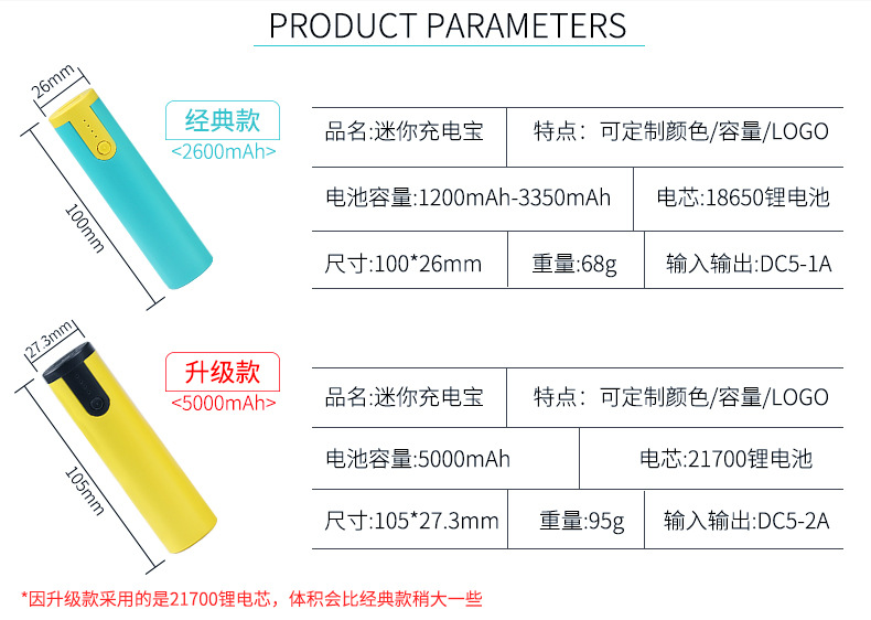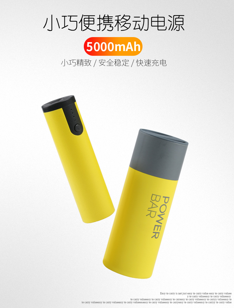 商品名称:小巧便携圆柱圆柱充电宝 升级款带手电二合一迷你移动电源5000毫安 展会礼品