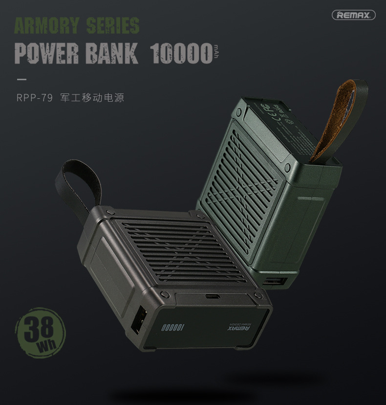 商品名称:REMAX创意军工10000毫安移动电源 户外便携小巧充电宝 户外礼品 活动小奖品