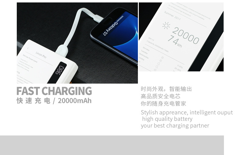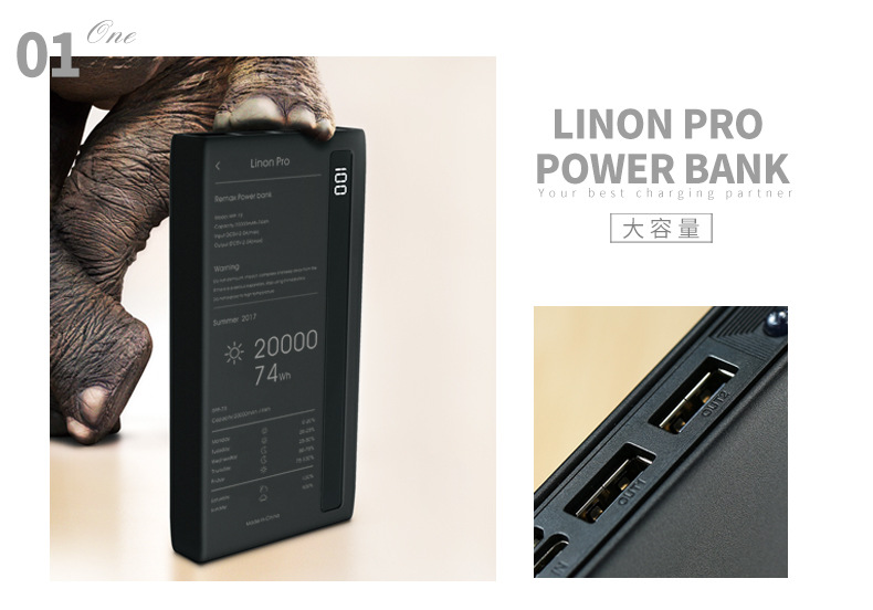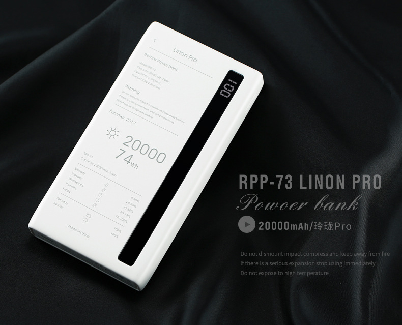 商品名称:REMAX 玲珑PRO带LED照明大容量充电宝 电量屏显20000毫安大容量移动电源 可印制logo礼品