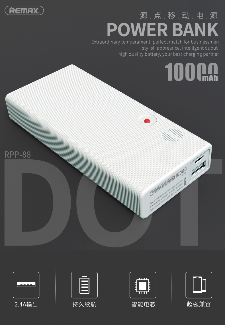 商品名称:REMAX 源点简约商务充电宝 条纹设计大容量移动电源10000毫安 会议礼品哪家强?