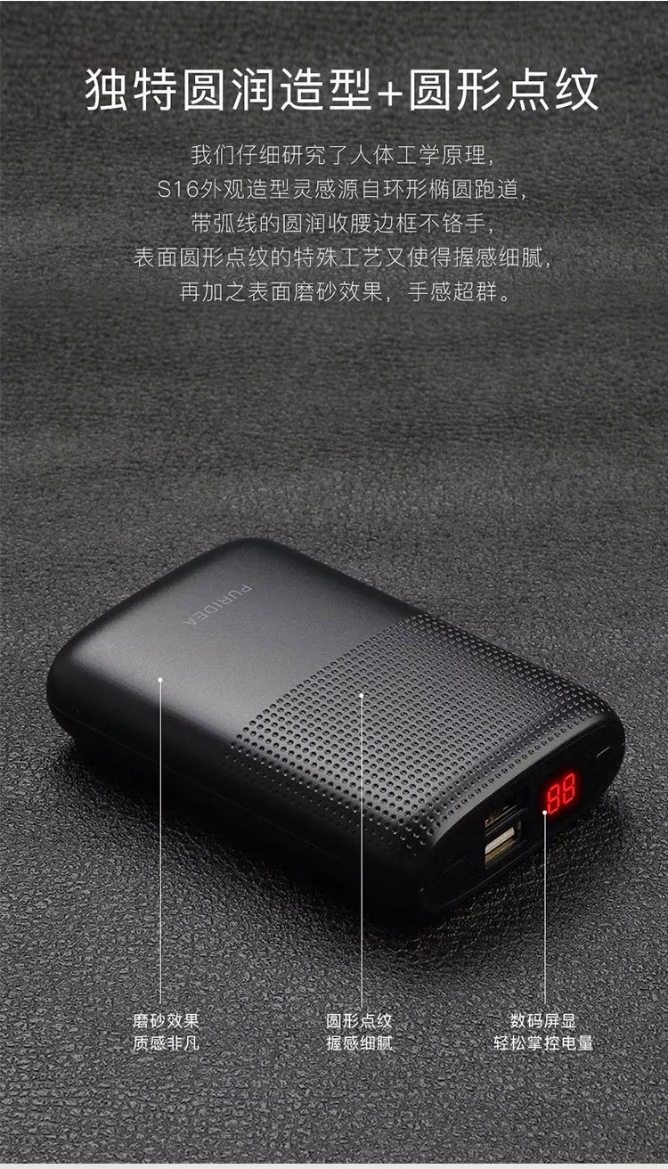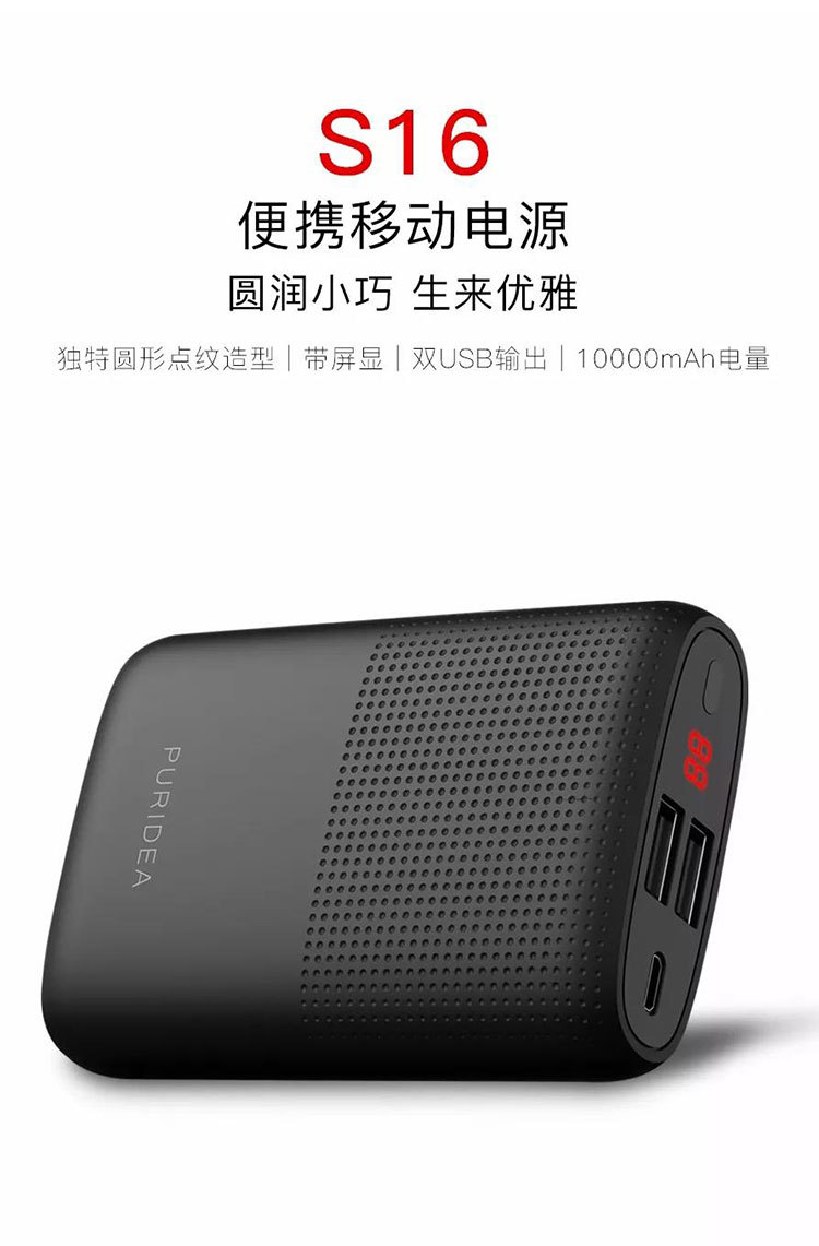 商品名称:PURIDEA 小巧便携大容量移动电源 双USB带数字屏显充电宝10000毫安 100元以内小礼品