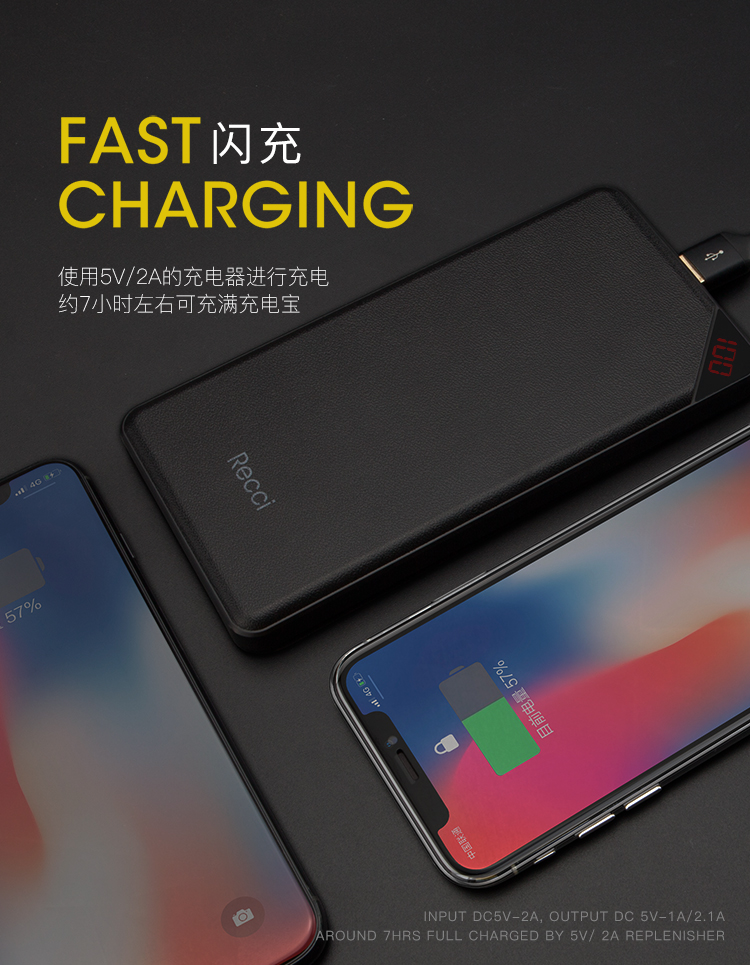 Recci10000毫安移动电源 苹果安卓双USB快充 超薄小巧便携充电宝 100元内的小礼品