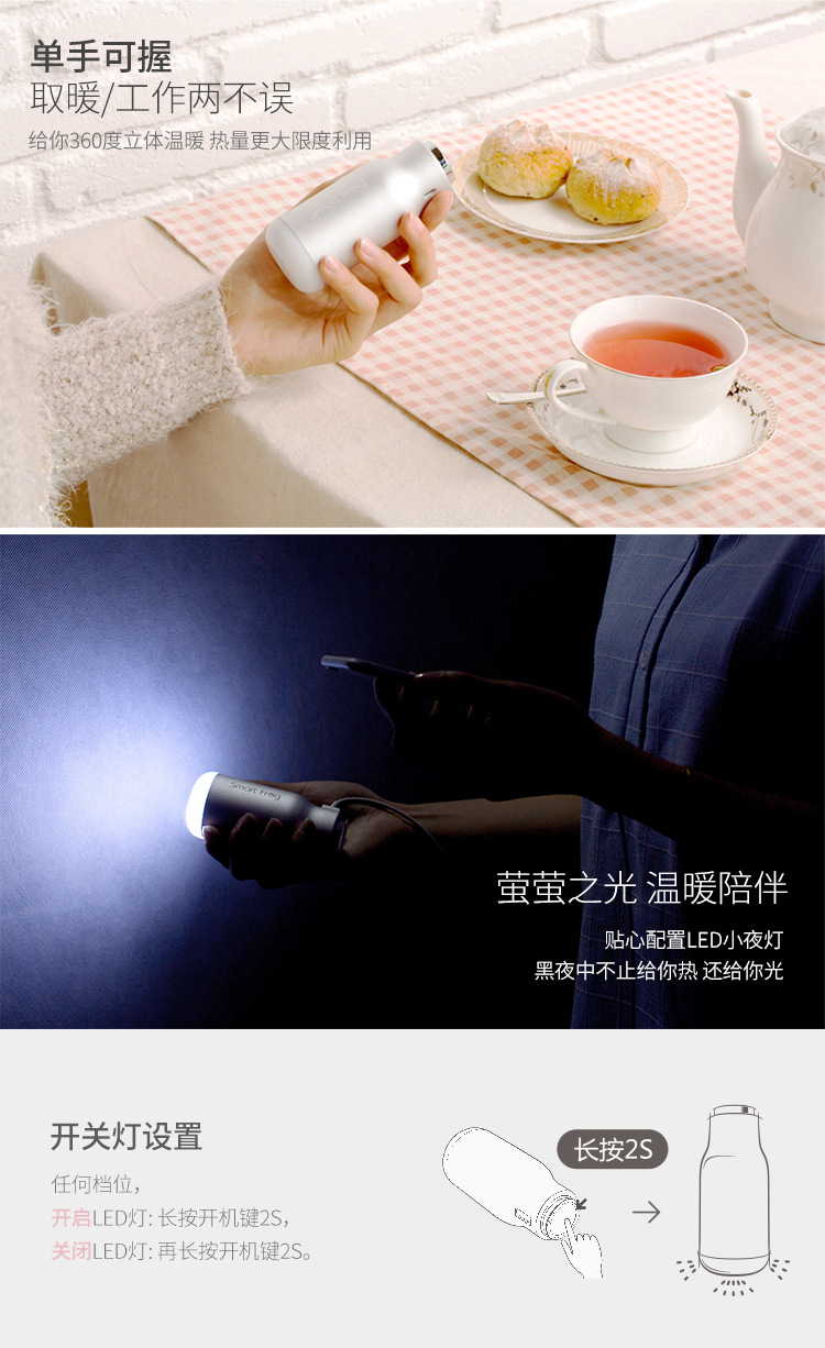 商品名称:Smart Frog手持式暖手宝 萤火瓶移动电源4400mAh 冬季保暖礼品