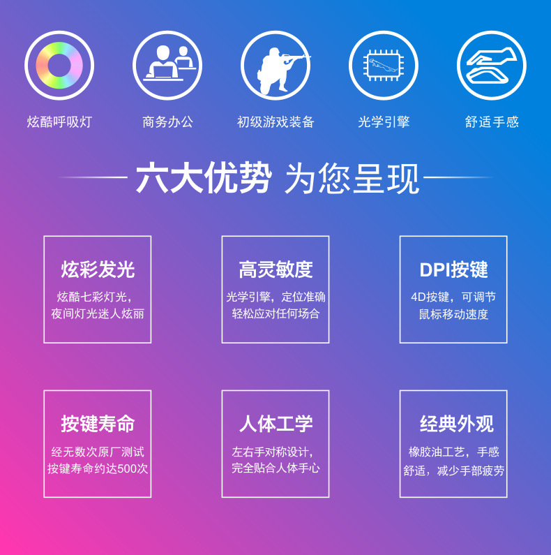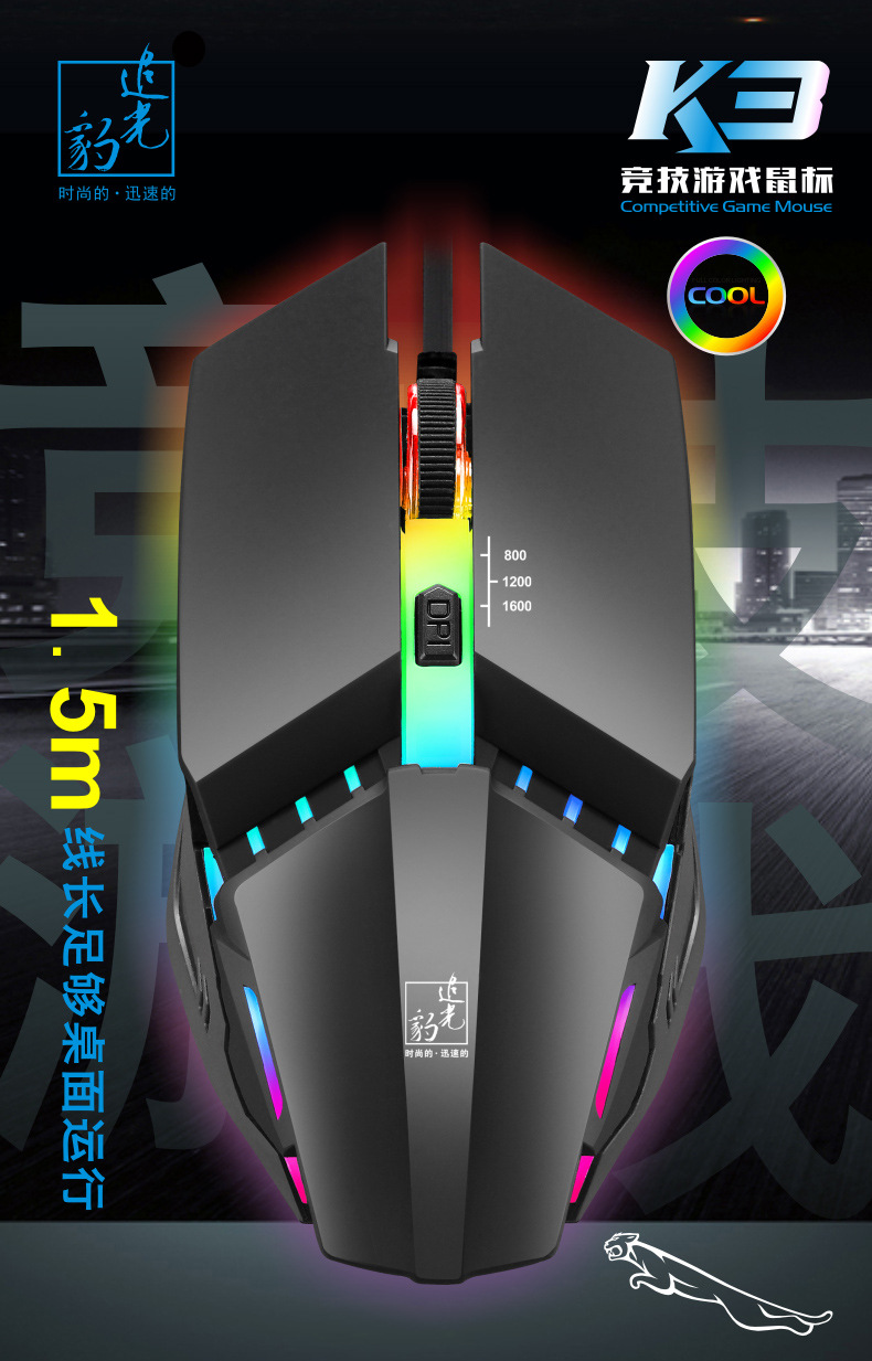 商品名称:追光豹K3有线鼠标usb七彩发光游戏竞技电脑鼠标 生活实用小奖品