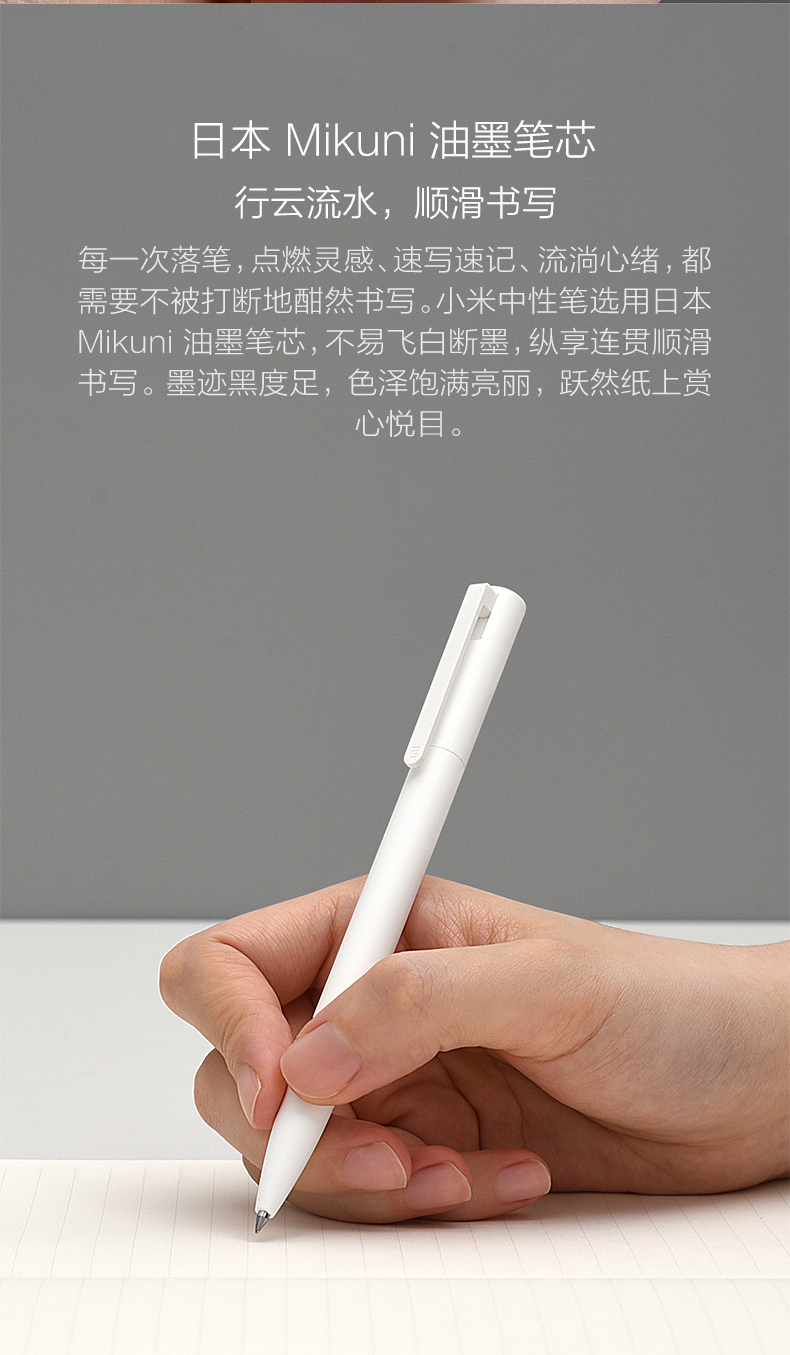 商品名称:小米按压式中性笔 极简纯白签字笔(10支装)