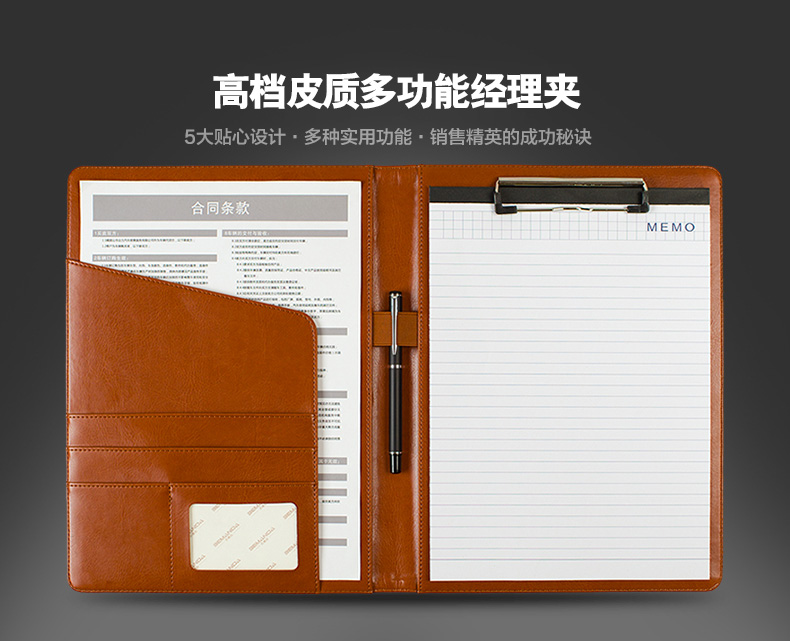 商品名称:带板夹款A4多功能文件夹 皮质文件袋办公档案袋 销售外带专用夹可定制LOGO 企业礼品定制