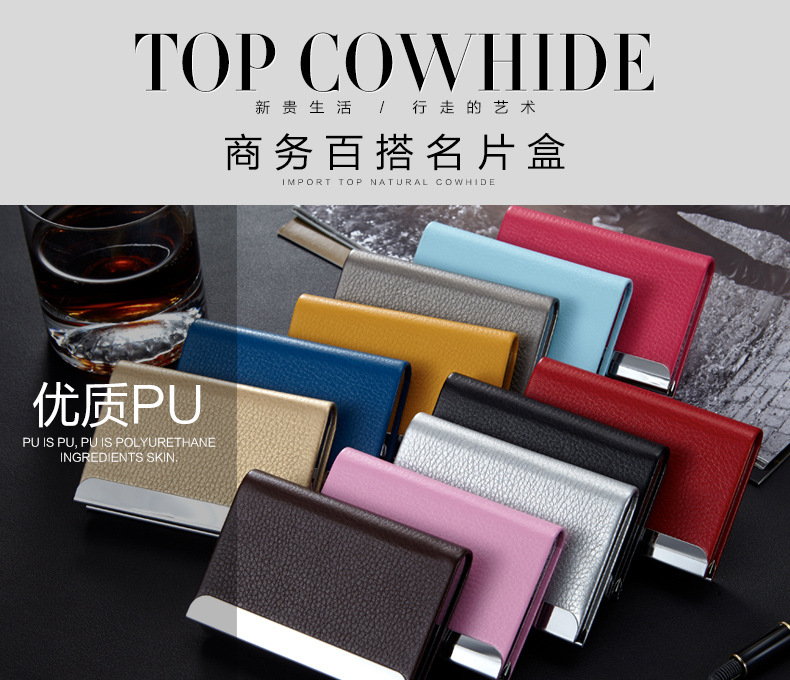 商品名称:PU荔枝纹皮商务不锈钢名片盒 公司礼品金属名片夹定制