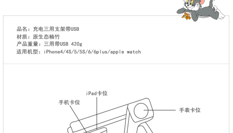 商品名称:创意多功能竹制支架 楠竹桌面手机充电置物架 手机平板充电座 客户礼品 特色年会礼品