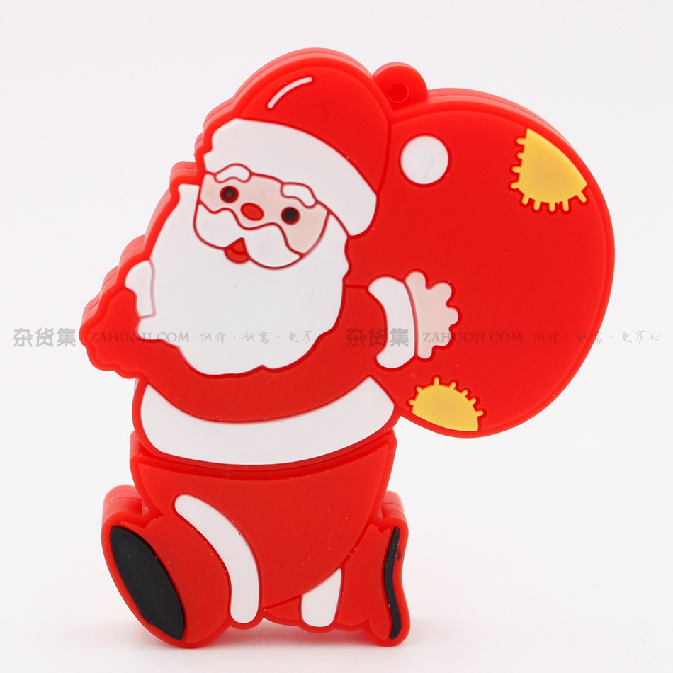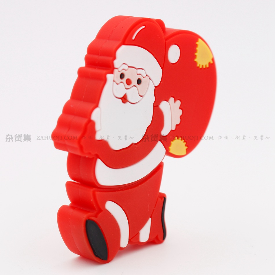 U盘定制 迷你PVC软胶U盘 圣诞节系列U盘 背礼物的圣诞老人优盘