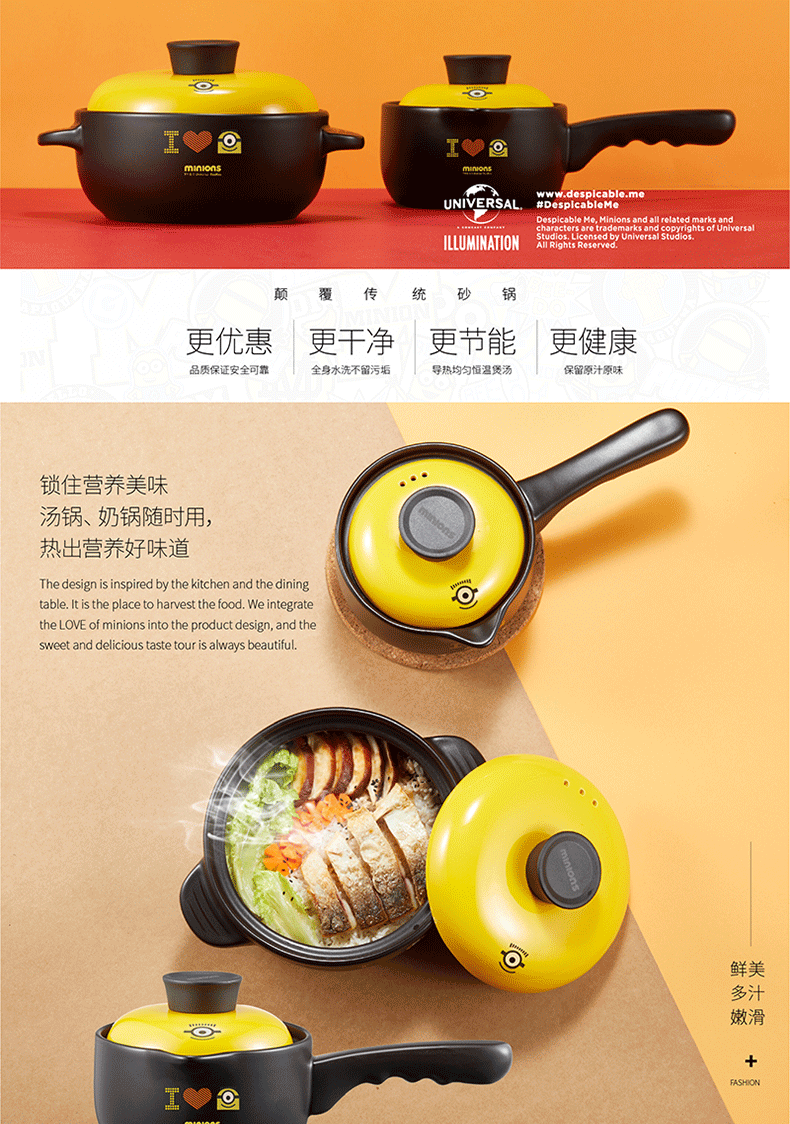 商品名称:小黄人 陶瓷耐热锅具两件套 展会礼品定制