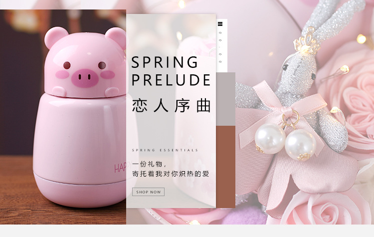 香皂玫瑰花束带串灯粉色小猪保温杯礼盒 三八妇女节福利方案