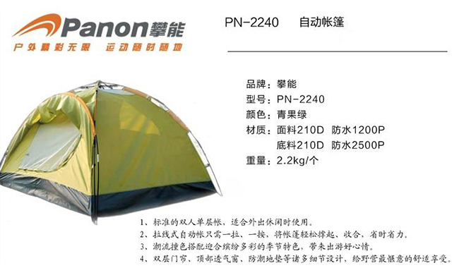 商品名称:攀能(Panon)双人自动帐篷PN-2240 全自动免搭建 户外礼品