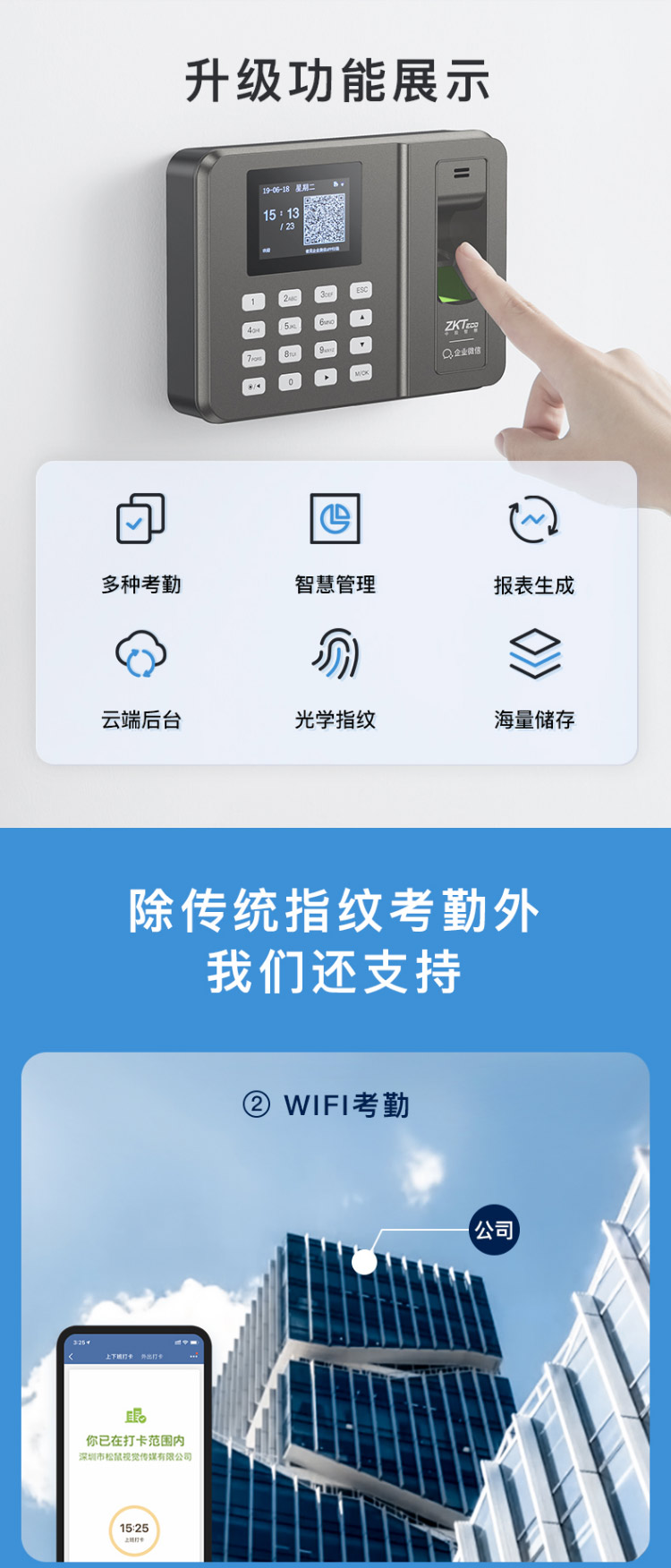 商品名称:企业微信 指纹打卡机云考勤机 无接触考勤多地多店签到自动生成报表升级款